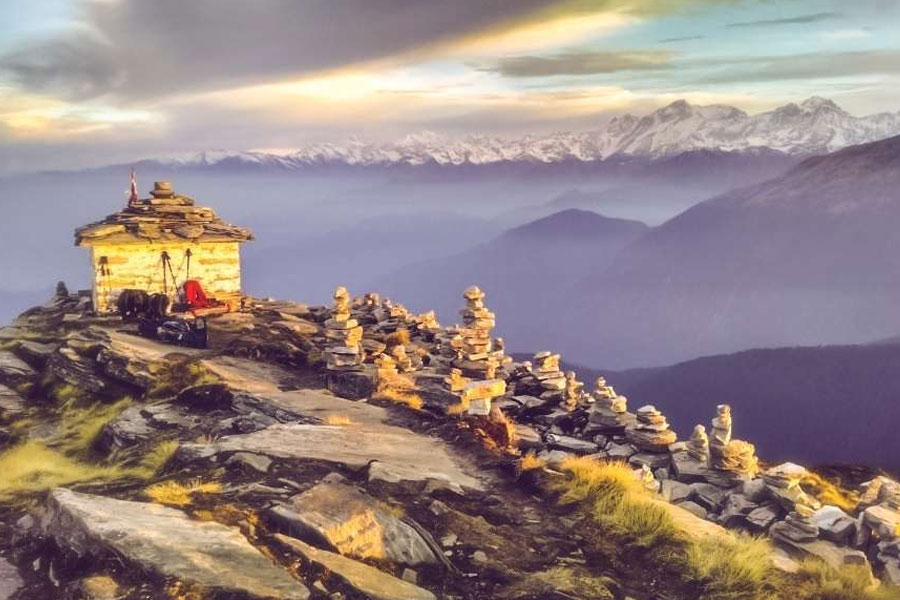 Chandrashilla also known as the Moon Peak is the peak situated above the Tungnath Temple at an elevation of 4000 metres above sea level. One can view mighty Himalayan peaks from the summit point of Chandrashilla peak namely Mt. Nanda Devi, Chaukhambha Parvat, Kedar Dome, Bandarpoonch etc.
